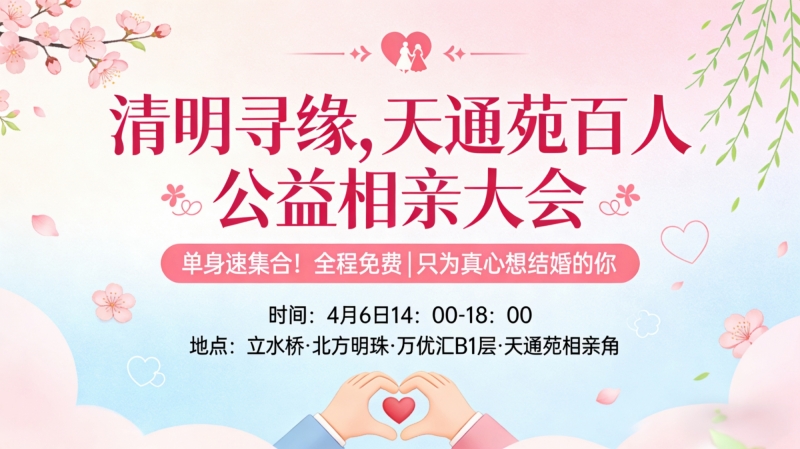 活动地点:立水桥·北方明珠·万优汇B1层·天通苑相亲角
