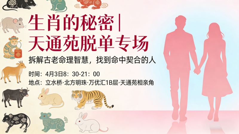 活动地点:立水桥·北方明珠·万优汇商场B1层·天通苑相亲角