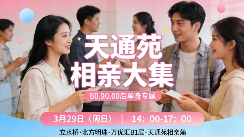 【3月29日】天通苑相亲大集——80.90.00后8分钟相亲会欢迎您!
