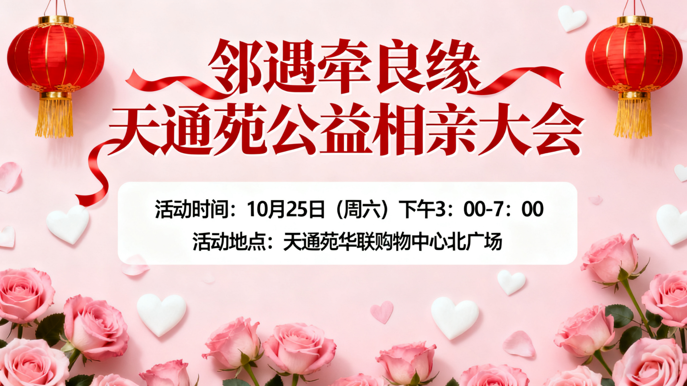 家在天通苑,缘分并不远!这个金秋,华联携手打造专属邻里的公益相亲盛会,不用跨区奔波,优质单身邻居齐聚一堂,父母也能放心陪同!
