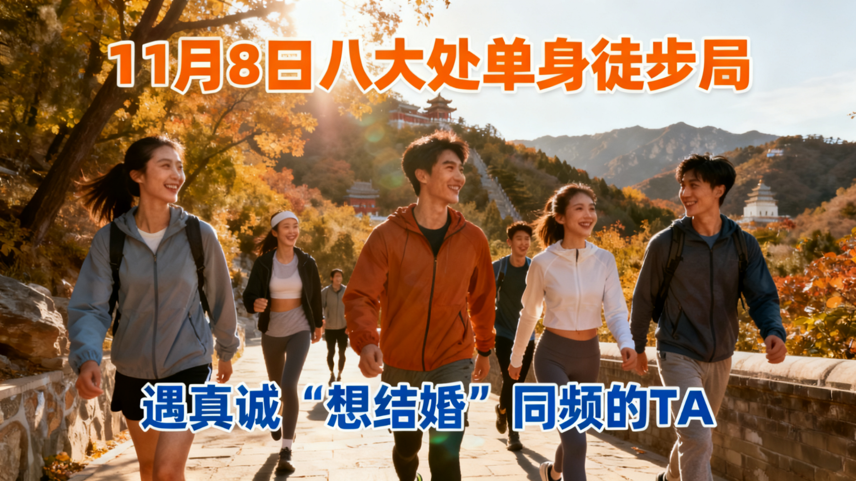 不想再被“无效相亲”消耗?不想对着社交软件尬聊?这次,我们把缘分藏进秋日山林——以结婚为目的的单身朋友,齐聚八大处公园,用轻松徒步代替刻意搭讪,用真诚交流筛选同频灵魂,不玩套路,只奔“一辈子”!