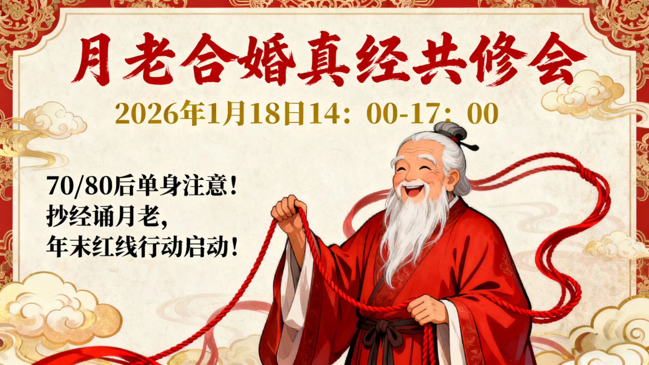 本期主题:招募70.80后单身共修《月老合婚真经》,以古老祝祷,唤醒今生良缘 !